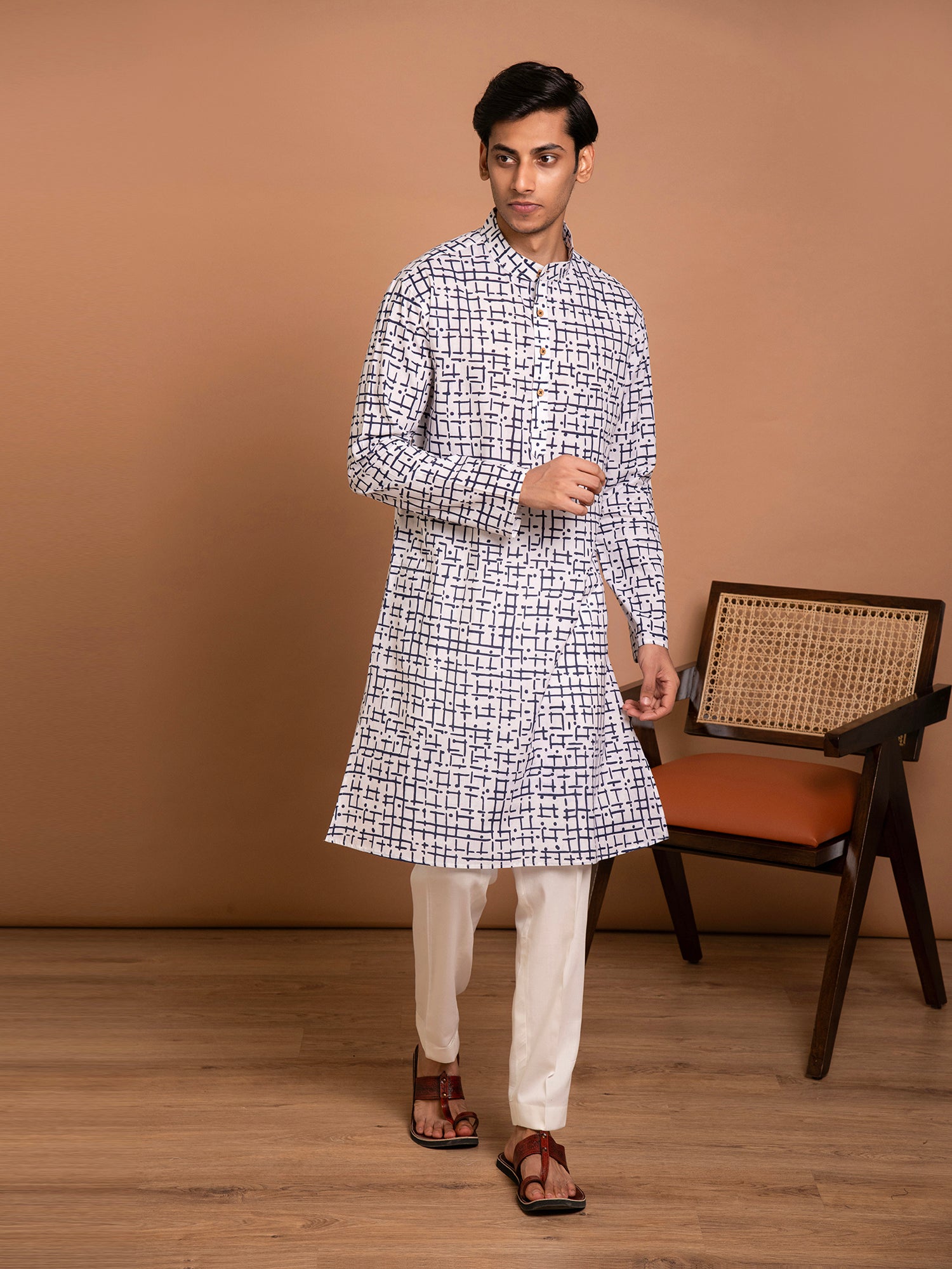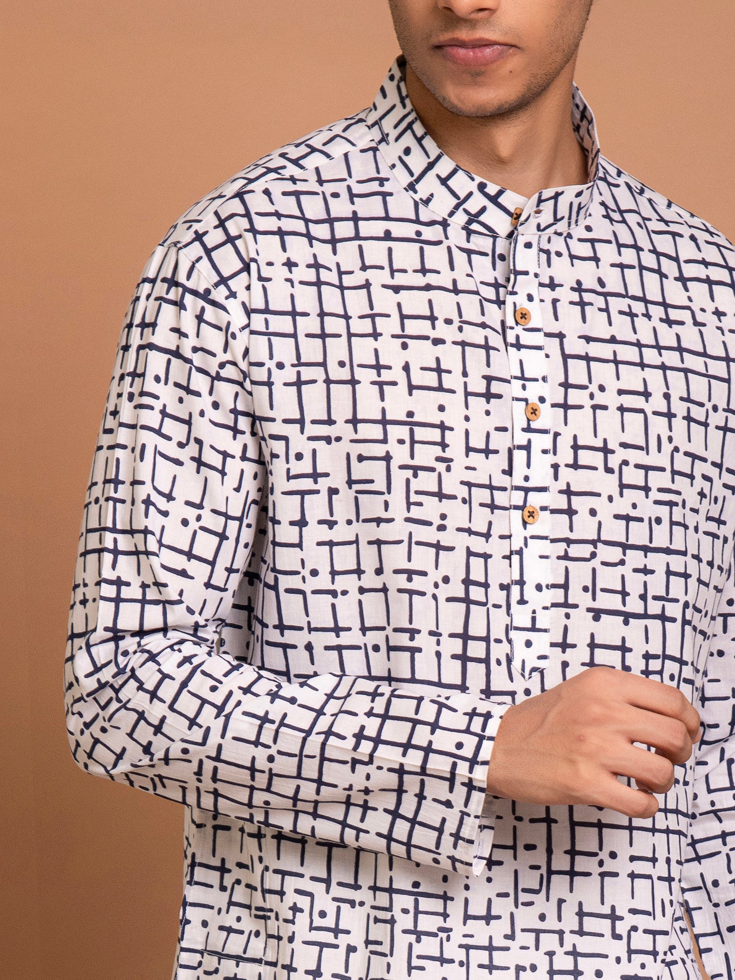 The Aaheli Sayan White Hand Block Printed Kurta-Pant Set blends traditional craftsmanship with contemporary style, providing wearers with a comfortable and chic outfit option imbued with artisanal flair. making it stand out and making it suitable for various occasions, from casual outings to festive gatherings.